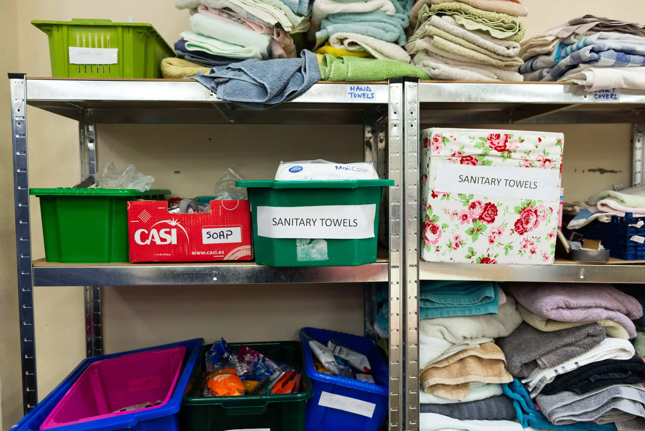 Storeroom: Bedding and towels are always required and appreciated, especially single fitted sheets.
